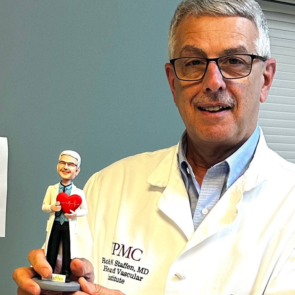 Our team of professional sculptors and painters carefully handles each order, striving to capture the essence and key features of the person. While the artistic style and size limitations may prevent a 100% photorealistic likeness, we ensure a highly recognizable result that people can instantly identify!